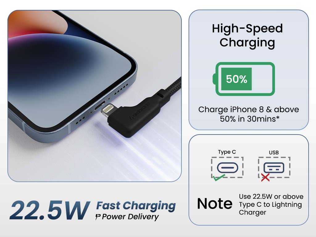 Fast Charging L-Shape Lightning Cable for iPhones