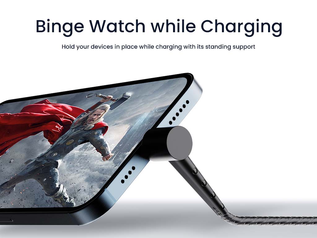 - Unbreakable Mobile Stand Cable - Made of special braided outer with rugged interior bindings, it is an ultra-durable cable that won’t be affected by daily rough usage. Keep your devices intact while charging.