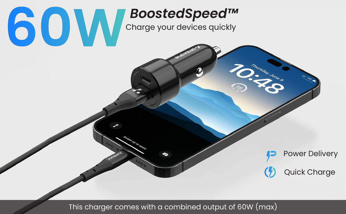 The ACC-60 car charger is a compact 60W charging solution with dual ports (USB-A & USB-C). It combines smart power management and safety features, BIS certification, and a 180-day warranty, making it an efficient and reliable on-the-go charging companion.