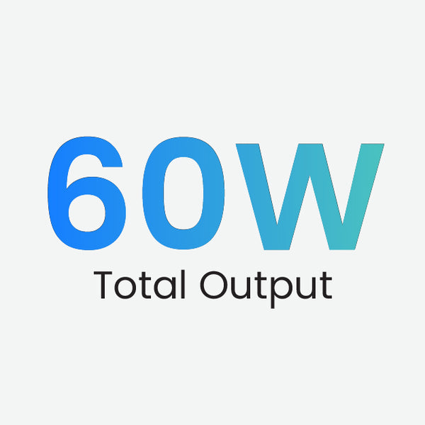 Experience a whopping 60W total output, empowering you to charge multiple devices simultaneously at optimal speed and efficiency.