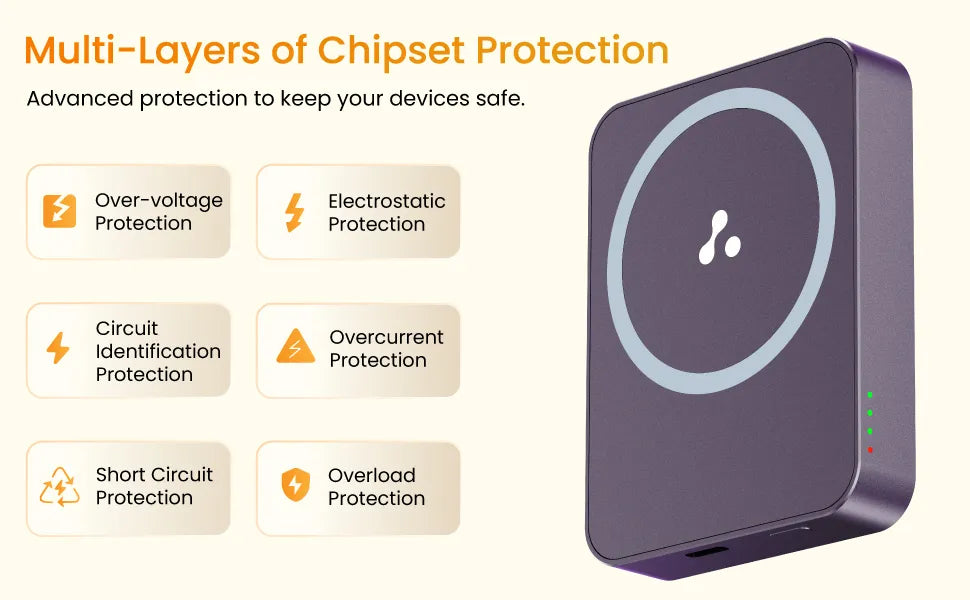- Multi Layers of Chipset Protection: Special protection mechanisms, including overcharge protection, short-circuit protection, temperature resistance, and a reset mechanism, safeguard your devices and the power bank.