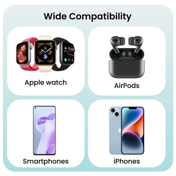 Enjoy wide-ranging compatibility with AeroSync Quad, catering to iPhones, smartphones, Apple Watch, and AirPods, making it a versatile charging hub for your entire tech collection.