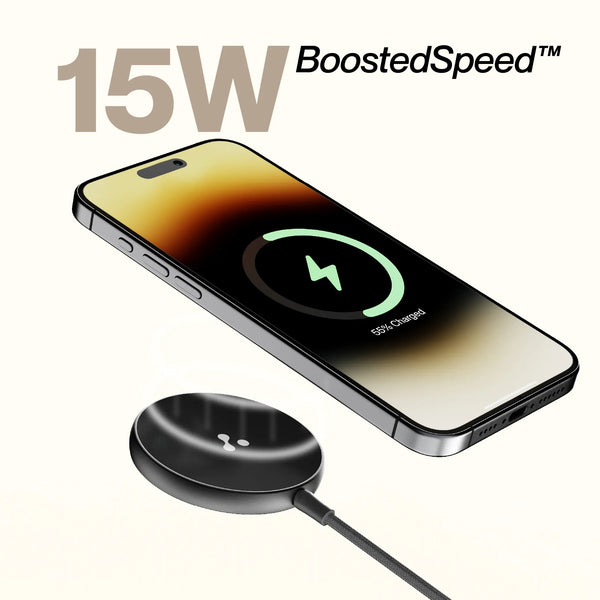 Experience faster wireless charging with AeroSynQ’s 15W BoostedSpeed™ technology. Get your devices powered up quickly and efficiently without compromising on convenience.