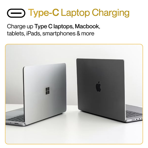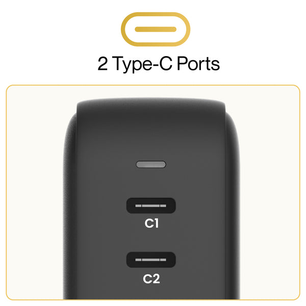 With two Type-C ports, this charger allows you to power up multiple Type-C devices simultaneously, making it a versatile charging solution for your gadgets.