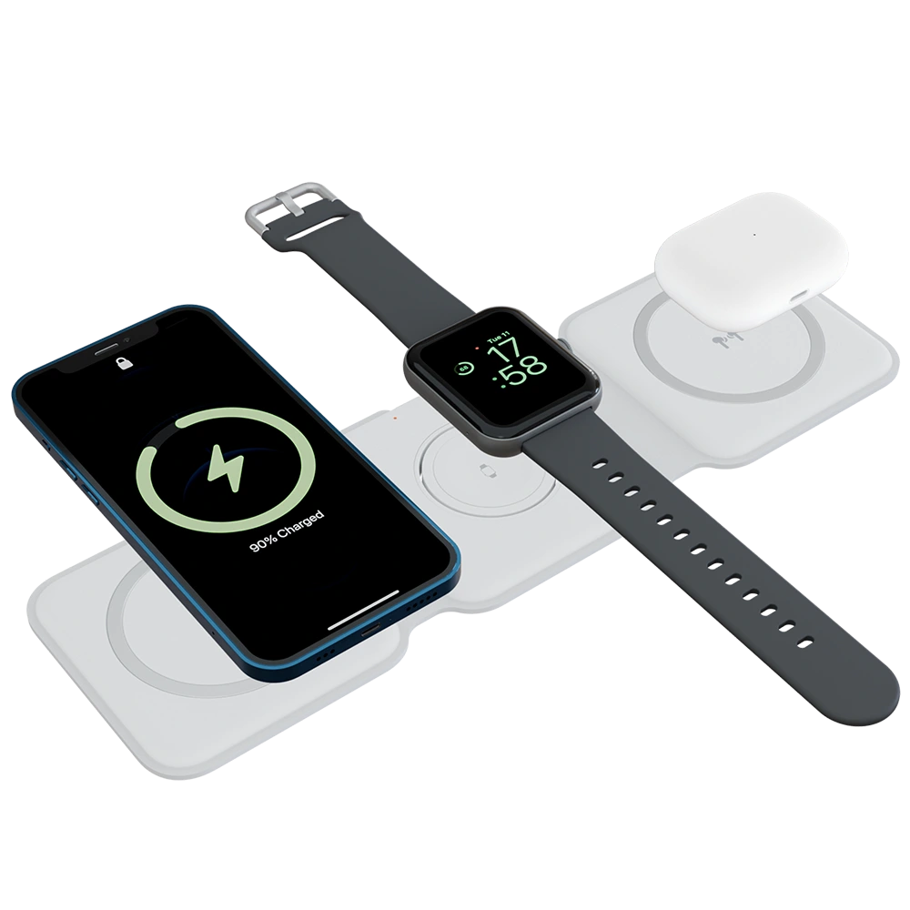 - 3 in 1 Wireless Charger- Conveniently charge your iPhone, wireless charging enabled smartphones, earphones and smartwatches. It comes with special Magnetic Charging technology that keeps your iPhone 12 and Apple smartwatches secure and in place.