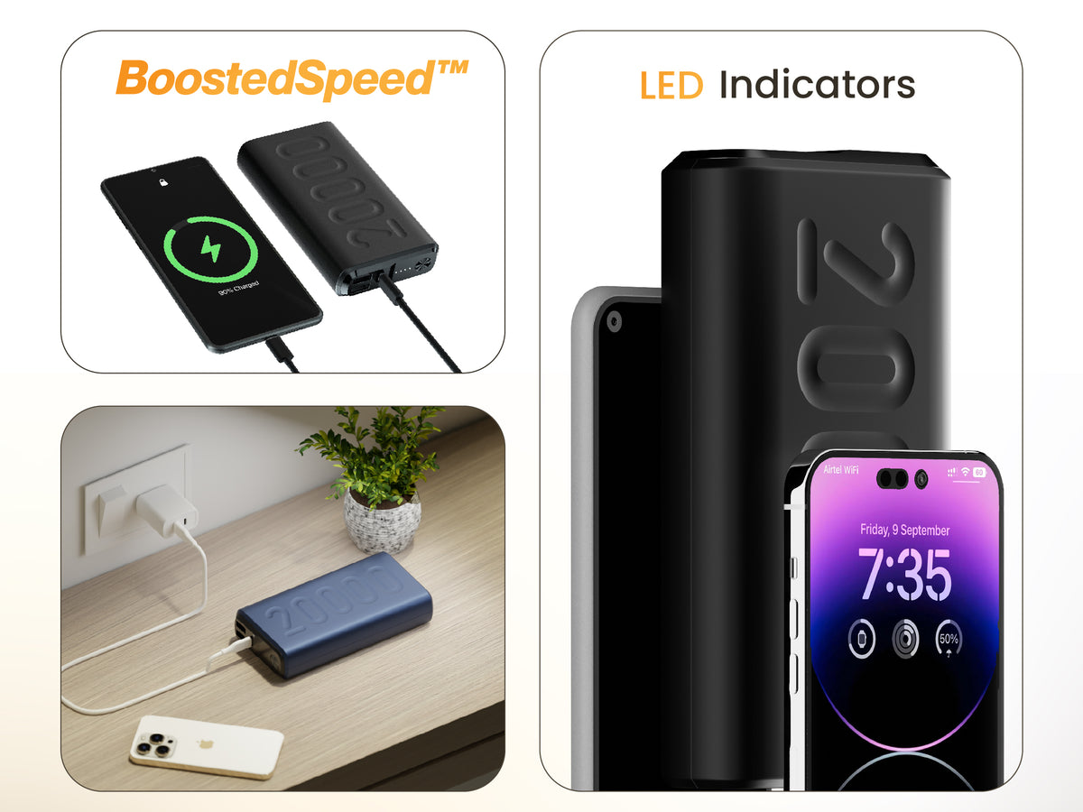 With BoostedSpeed™ technology, the Stylo 20 ensures rapid charging while LED indicators keep you informed about the remaining power, allowing convenient planning for your charging needs.