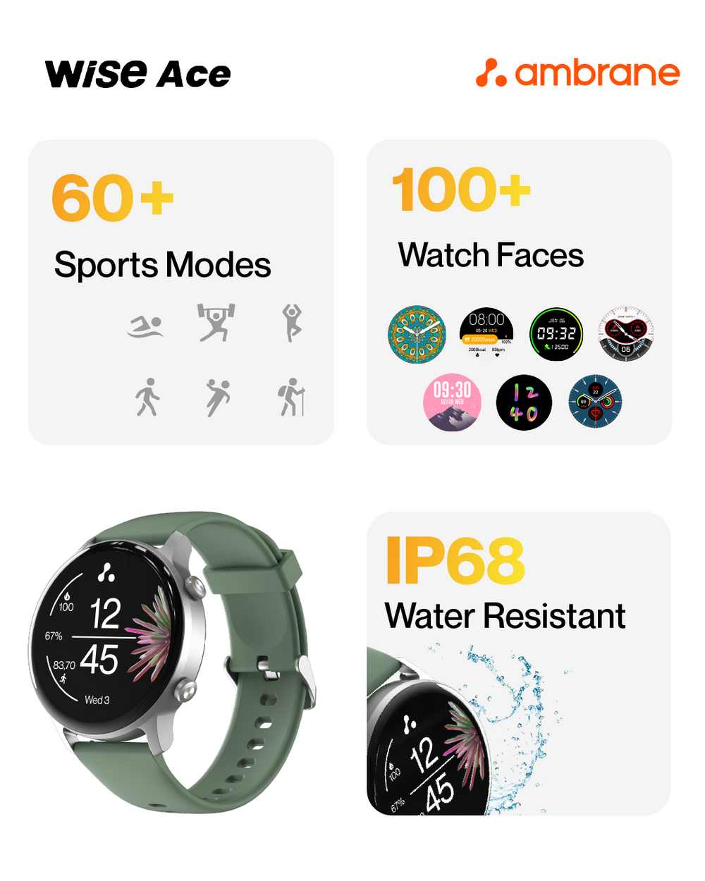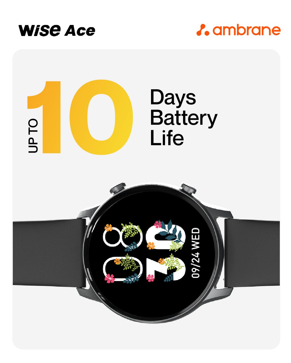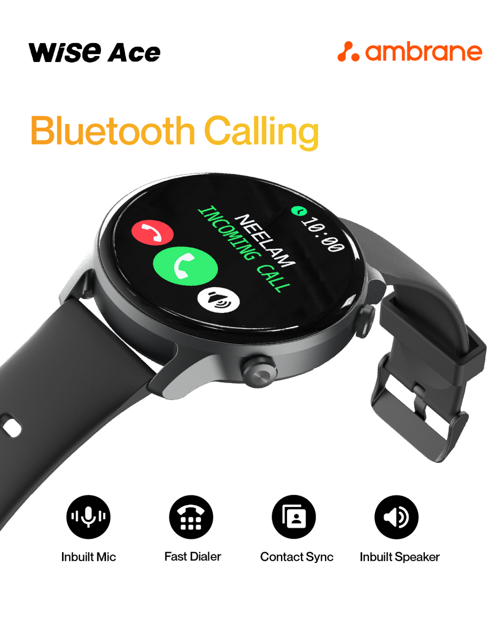 Jazz up your lifestyle with Wise Ace! It comes with a 1.28” LucidDisplay™ and a classy-stylish design. It provides precise health insights whenever you need them while keeping you well connected with the world. Take and make calls with full ease regardless of where you are as this watch comes equipped with the Bluetooth calling feature. Whether you are out for a quick run or rushing for your next deadline, Wise Ace will make you give your best performance. Now is the time to Ace free and powered!