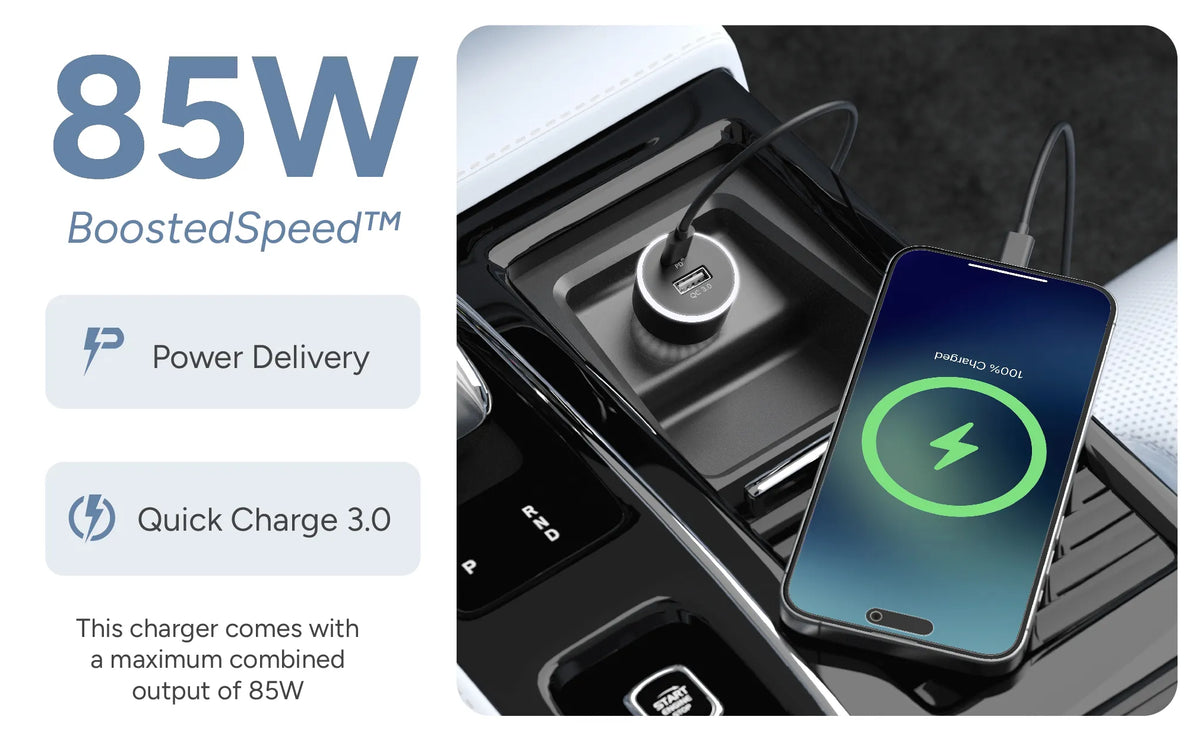 The Charge C85 delivers exceptional power for all your devices while you’re on the move. Stay charged and connected during every journey with this reliable car charger