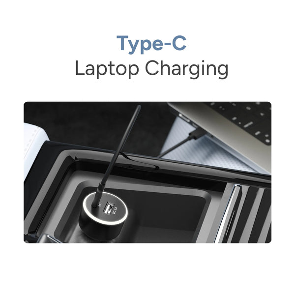 Support for Type-C laptop charging allows you to power your laptop with up to 65W. Enjoy the convenience of charging your laptop directly from your car.