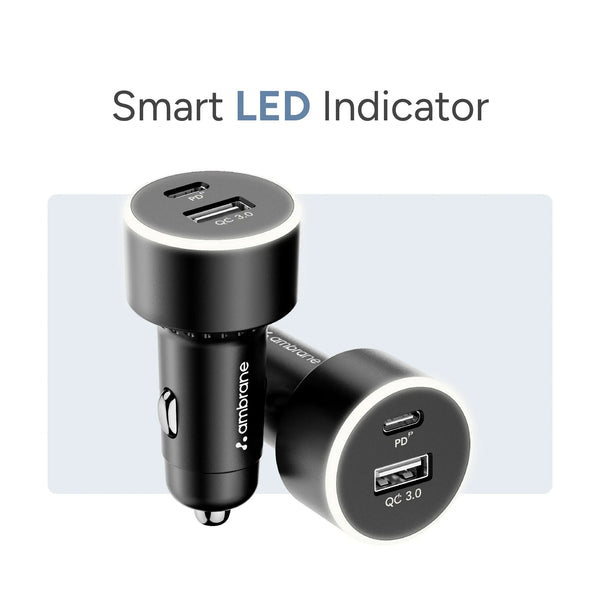 The Ambrane C85 is a powerful 85W car charger designed to meet all your on-the-go charging needs. With its dual-port setup, including a high-output USB-A port and a robust USB-C port, this charger ensures that your devices charge quickly and efficiently. Its versatile input range allows it to fit most vehicle power systems, and its compact design ensures it blends seamlessly with your vehicle’s interior. Equipped with advanced protection features, the Ambrane C85 provides safe and reliable charging for a wide range of electronic devices, from smartphones to tablets.