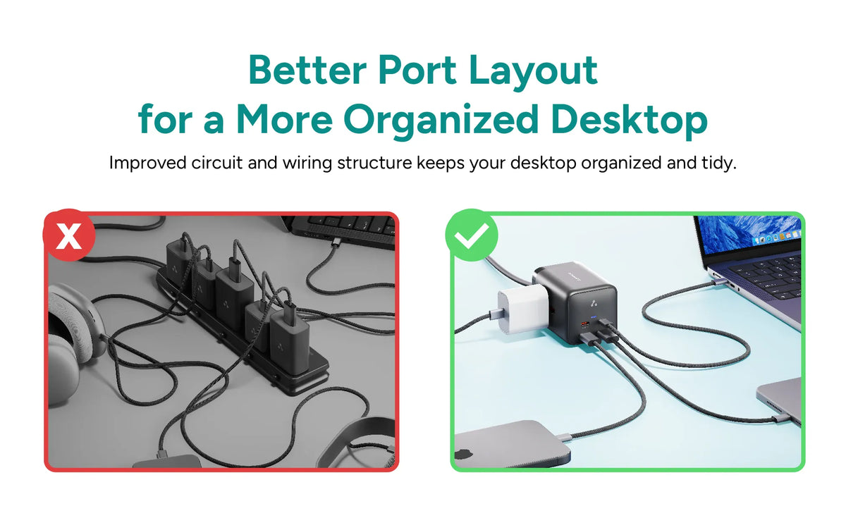 - GaN Technology: Latest technology that makes the charger smaller, more efficient, and cooler than traditional chargers.