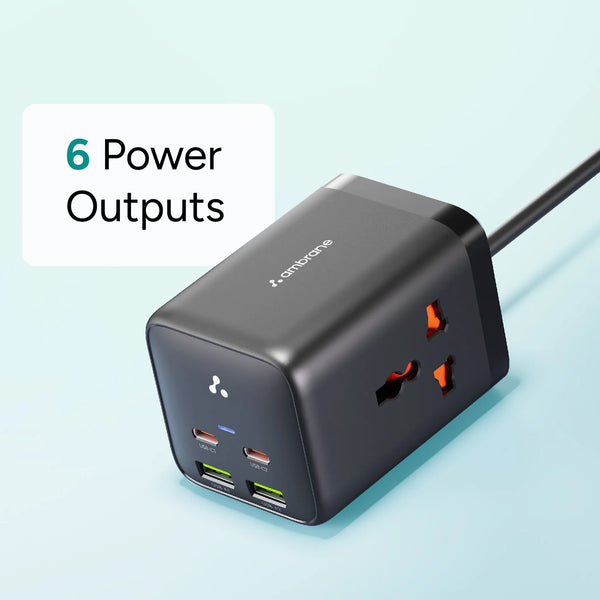 With 6 versatile ports—including USB-A, USB-C, and AC sockets—this charging extension delivers efficient power distribution, ensuring optimal charging for multiple devices simultaneously.