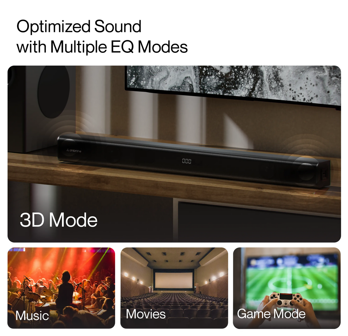 - Multiple EQ Modes: This soundbar is apt for multiple forms of entertainment as it offers different adjustable EQ Modes for a true listening experience.