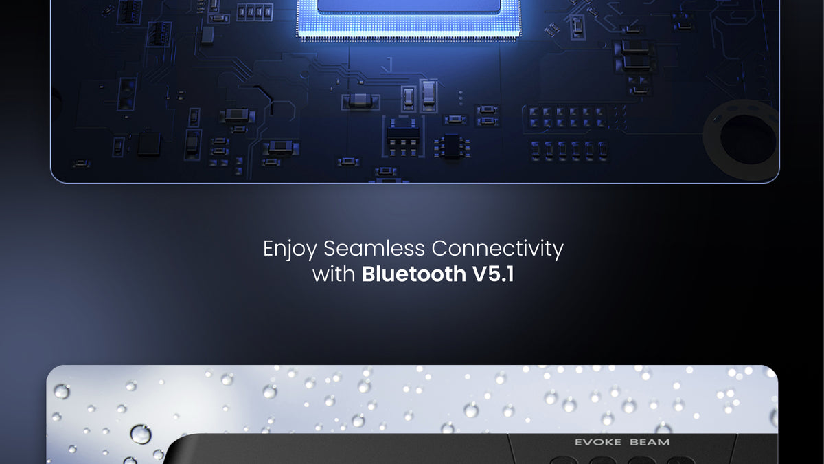 - Durable & Stylish with RGB lighting: With an IPX4 water-resistant rating, the Evoke Beam is safe to use even in damp or wet conditions, making it perfect for outdoor use. Plus, its RGB lighting adds a fun element to your music experience.