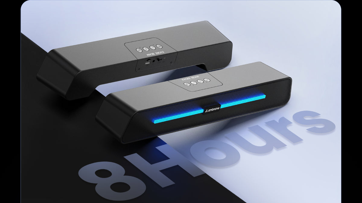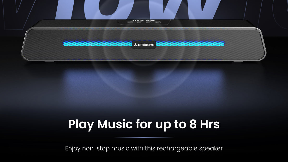 The Evoke Beam is a stylish and versatile portable Bluetooth speaker that is perfect for music lovers on the go. Made in India, this speaker boasts a sleek black mesh design that enhances its crystal-clear sound quality. With a 10W speaker and 51mm dynamic drivers, the Evoke Beam delivers BoostedBass™ and high-quality sound. It has a long battery life of up to 8 hours, making it ideal for outdoor use and the RGB light adds a fun element to your music experience.