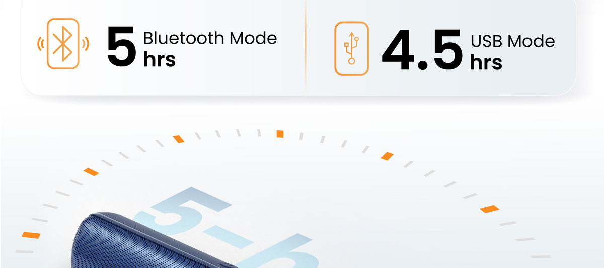 - Rechargeable and Long-Lasting: The speaker is rechargeable with a 2000mAh battery that can last up to 5 hours in Bluetooth mode and up to 4.5 hours in USB mode. Plus, it has a charging time of 2 hours and 40 minutes.