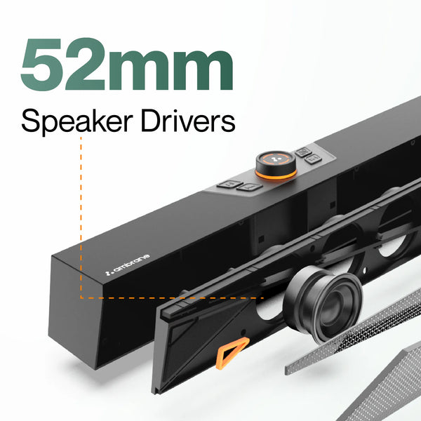 Equipped with premium 52mm speaker drivers, the Evoke Beam 20 delivers impressive sound quality. Enjoy deep bass, clear mids, and crisp highs for a balanced and dynamic audio performance.