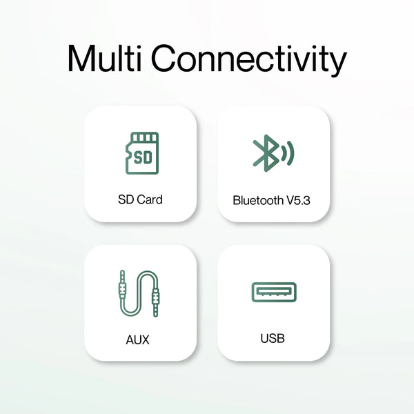 Stay connected with versatile options including Bluetooth V5.3, SD Card, AUX, and USB inputs. Enjoy the flexibility to play your music from multiple sources with ease.
