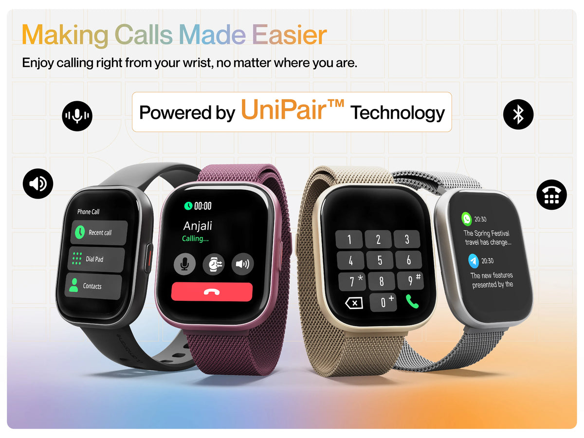 - Calling Feature: Bluetooth Calling with Inbuilt Mic, Inbuilt Speaker and Dialer, UniPair™ Technology