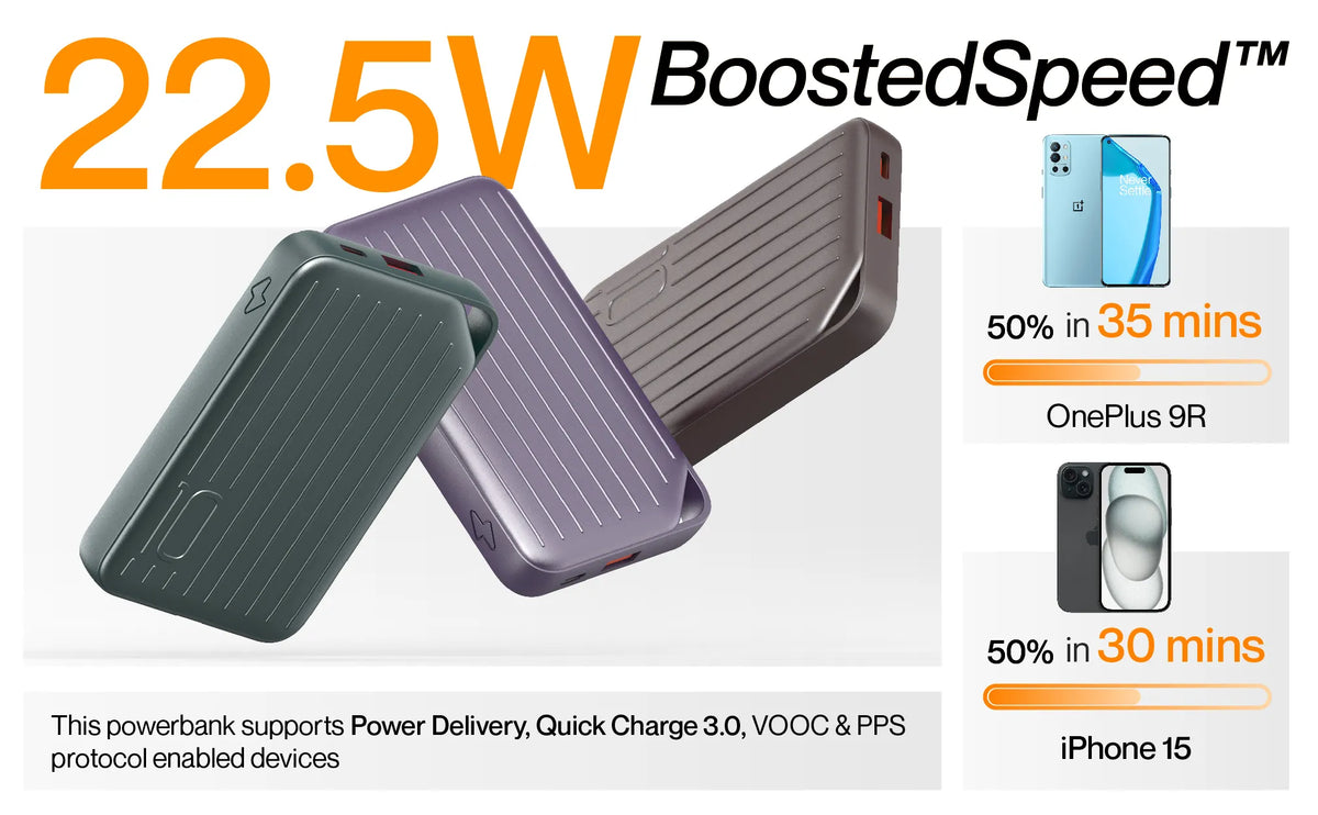 Fast Charge iPhone 15 (50% in 30 mins): Charge your iPhone 15 to 50% in just 30 minutes with the Line 10. Enjoy the convenience of fast charging for your OnePlus 9R, reaching 50% in only 35 minutes.