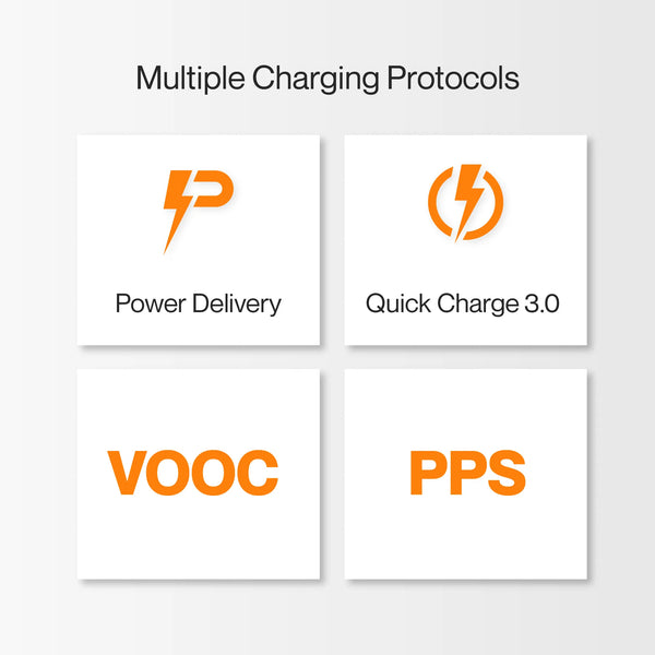 - Multiple Charging Protocols: Supports various charging protocols including PD 3.0, QC 3.0, PPS, and VOOC, offering compatibility with a wide range of devices and ensuring efficient charging.