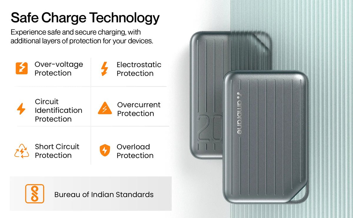 Experience safe and secure charging, with additional layers of protection for your devices. The Line 20 ensures peace of mind with comprehensive safety measures, including Overload, Over-voltage, Electrostatic, Overcurrent, Short Circuit, and Circuit Identification Protection, and is BIS Certified.