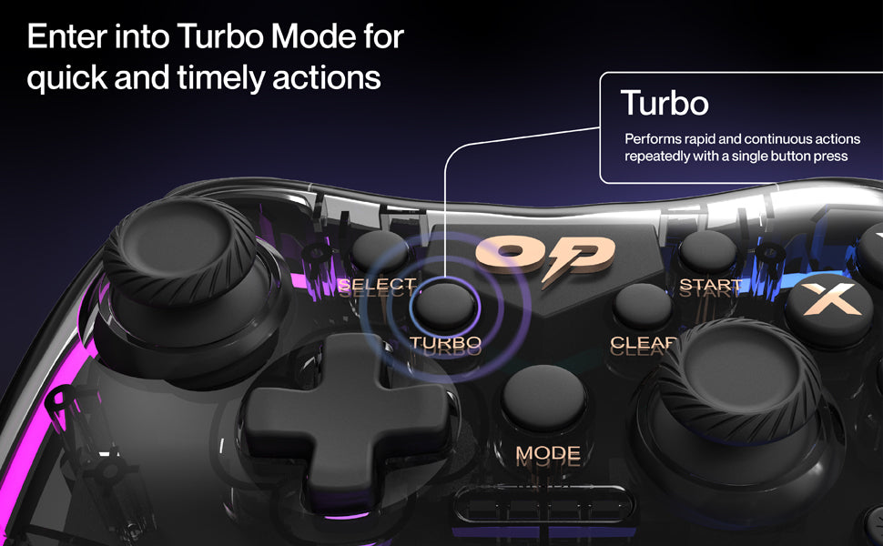 - Turbo Mode: The Turbo mode feature of the controller enhances the gaming experience by allowing the user to press a button repeatedly to perform actions quickly.