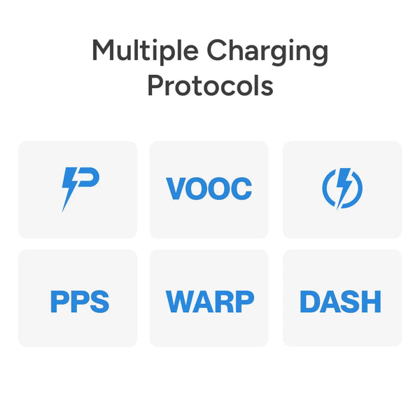 PowerLit Duo 30 supports Quick Charge 3.0, Power Delivery, PPS, DASH, and WARP. Enjoy fast, efficient charging tailored to your device’s needs.