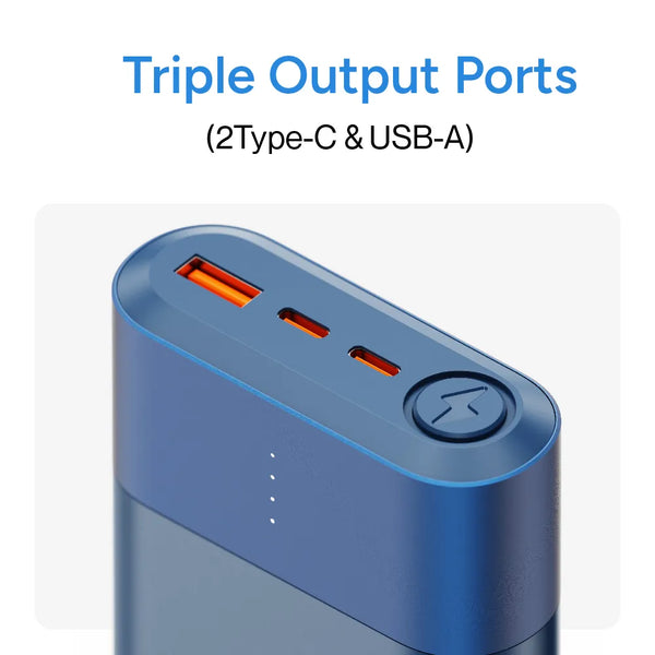 - USB-A Output for Extra Compatibility: In addition to its Type-C ports, the powerbank features a USB-A port that delivers up to 22.5W of power, making it compatible with older charging cables and a variety of electronic gadgets.