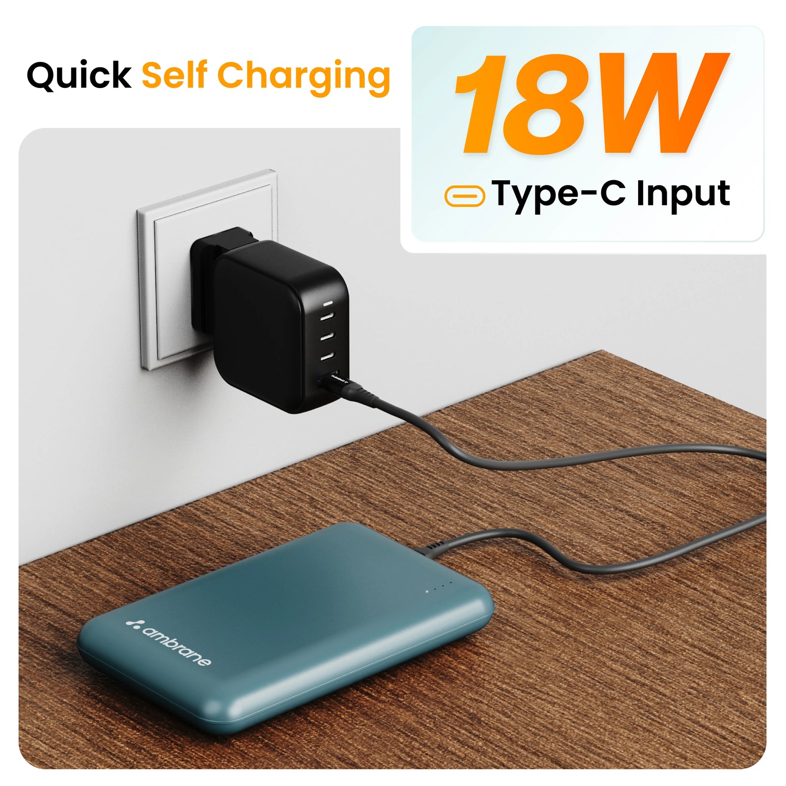 - Fast Charging Input - This powerbank supports 18W fast charging input via a Type-C port, which enables it to charge quickly.