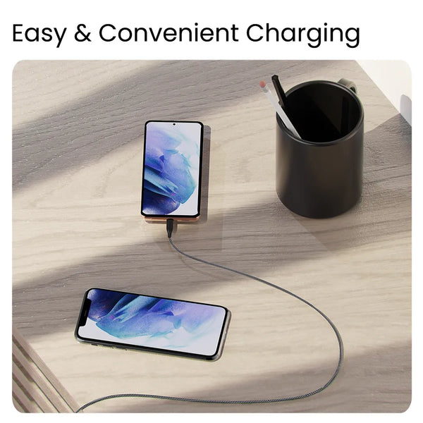 This cable is designed for easy and convenient charging. No more fumbling around with cords or struggling to reach your device - simply plug in and go!
