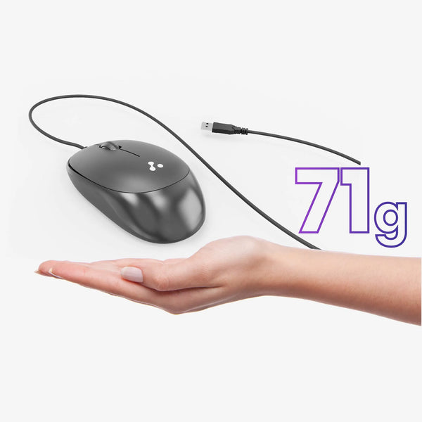 The Ambrane SliQ 2 Wired mouse features a lightweight body, weighing only 71 grams, making it easy to maneuver and carry, ensuring a hassle-free user experience.