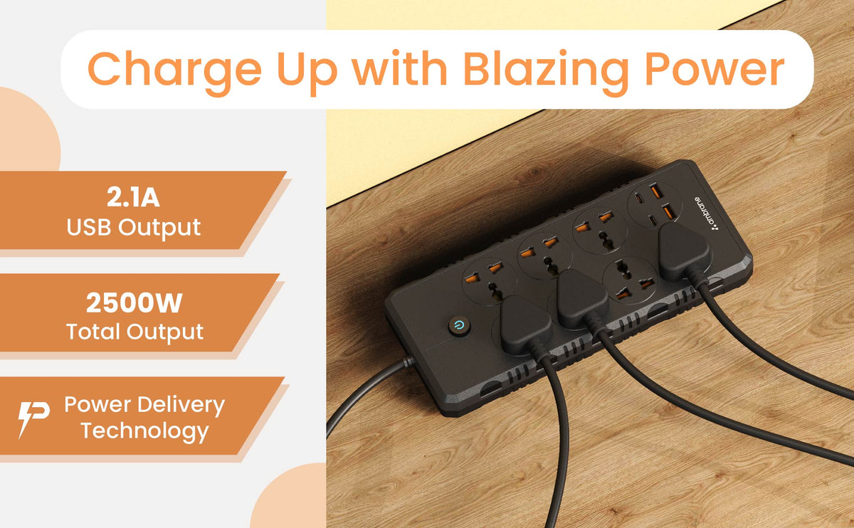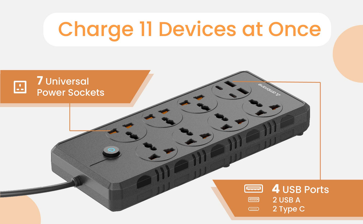 - Universal Powerstrips with PD Port: Offers 7 power ports, 2 USB ports, and 2 PD ports for versatile charging options.