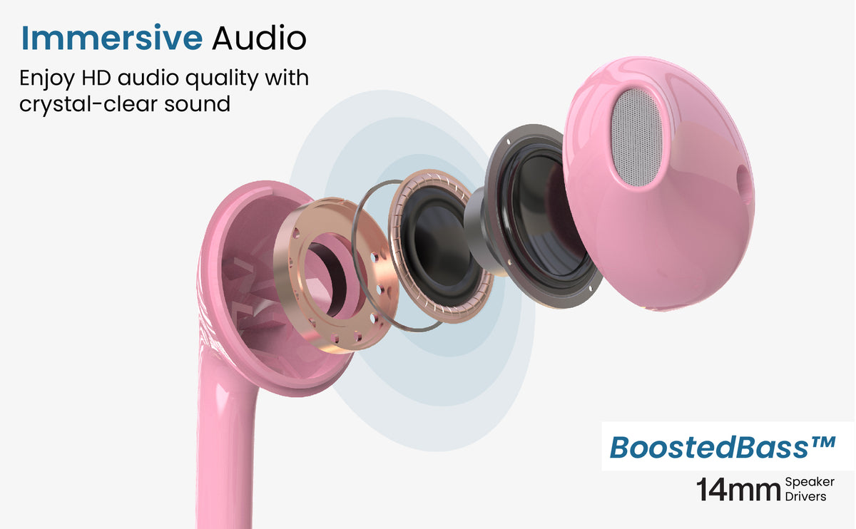 - Boosted Bass - The earphones come with high bass quality and 14mm dynamic drivers for a pure listening experience. Enjoy your favourite web series and songs with an HD-quality audio experience.