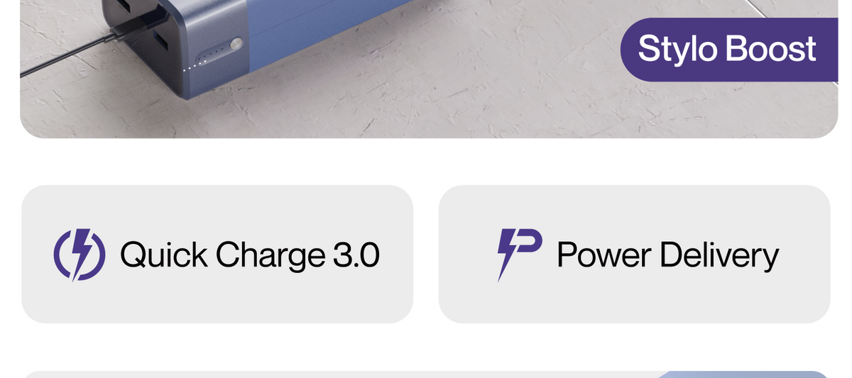Introducing Stylo Boost, the ultimate 40,000mAh power bank designed to meet all your needs, from fast charging laptops like MacBook to powering up iPhones, Androids, TWS, Speakers. It's not just any power bank; it's a laptop power bank, a MacBook charging power bank, and the best choice for anyone looking for a reliable power bank for laptop or questioning which power bank is the best? it's the perfect companion for tech enthusiasts seeking a power bank 40000mAh with ultra fast charging power bank features. Its compatibility extends across all devices that can be charged via USB or Type-C, making it a versatile Type C laptop charging power bank and 65W fast charging power bank. Designed with a classy metallic body, this made-in-India powerhouse is not just about power but also about style offering and reliable charging solution for your MacBooks & iPhone. Whether you're in search of an iPhone power bank, a macbook type c laptop charging powerbank, or simply the best power bank to buy.