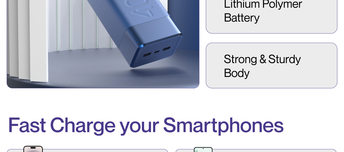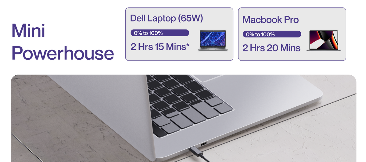 - Charge your Type-C Laptops- This powerbank is powerful enough to charge your Type-C Laptops with its blazing 65W output.