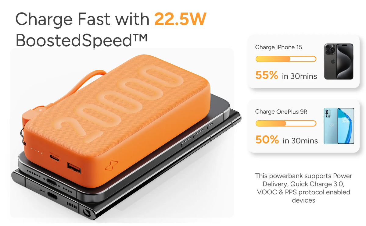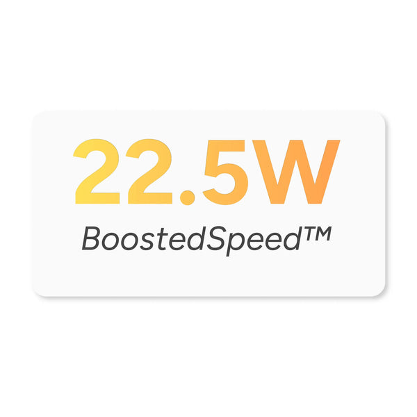 Experience fast, efficient power with 22.5W BoostedSpeed™ and boost your battery up to 50% in just 30 minutes, perfect for busy days or travelling. Be it iPhone or any other device, get the speed you deserve on the move.
