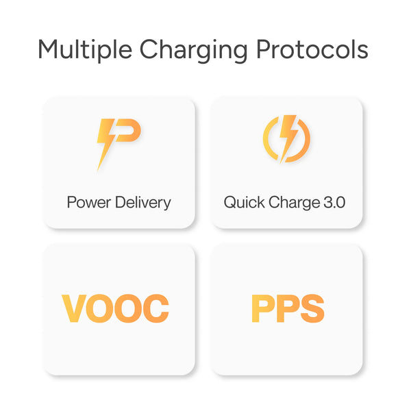 - Broad Protocol Compatibility: Supports PD 3.0, QC 3.0, PPS, and VOOC protocols, making it compatible with a variety of devices for seamless charging.