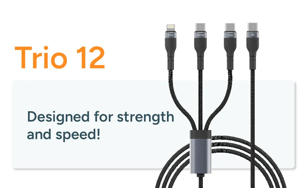 Trio12 delivers reliable charging with a durable braided design for long-lasting performance.