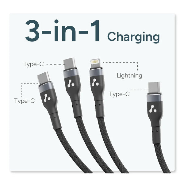 - 3-in-1 Versatility: Combines Type-C to two Type-C connectors and one Lightning connector, offering compatibility with iPhones, Type-C devices, laptops, and more.