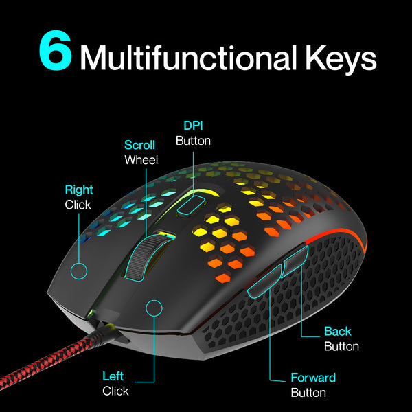- Lightweight Gaming Mouse: Enables quick and effortless moves during intense gaming.
