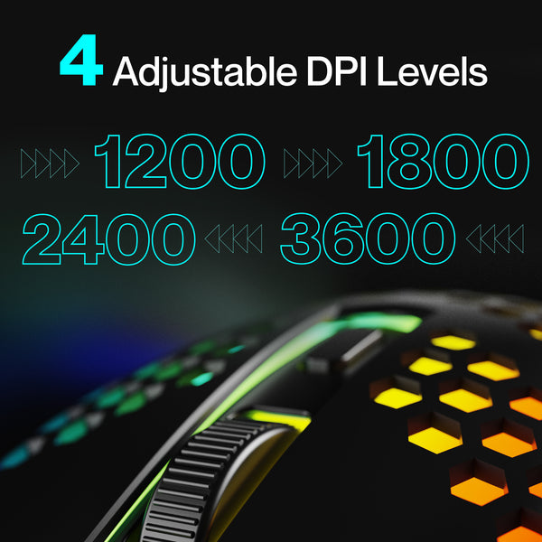 - Adjustable DPI: Choose from 1200/1800/2400/3600 for precise sensitivity control.