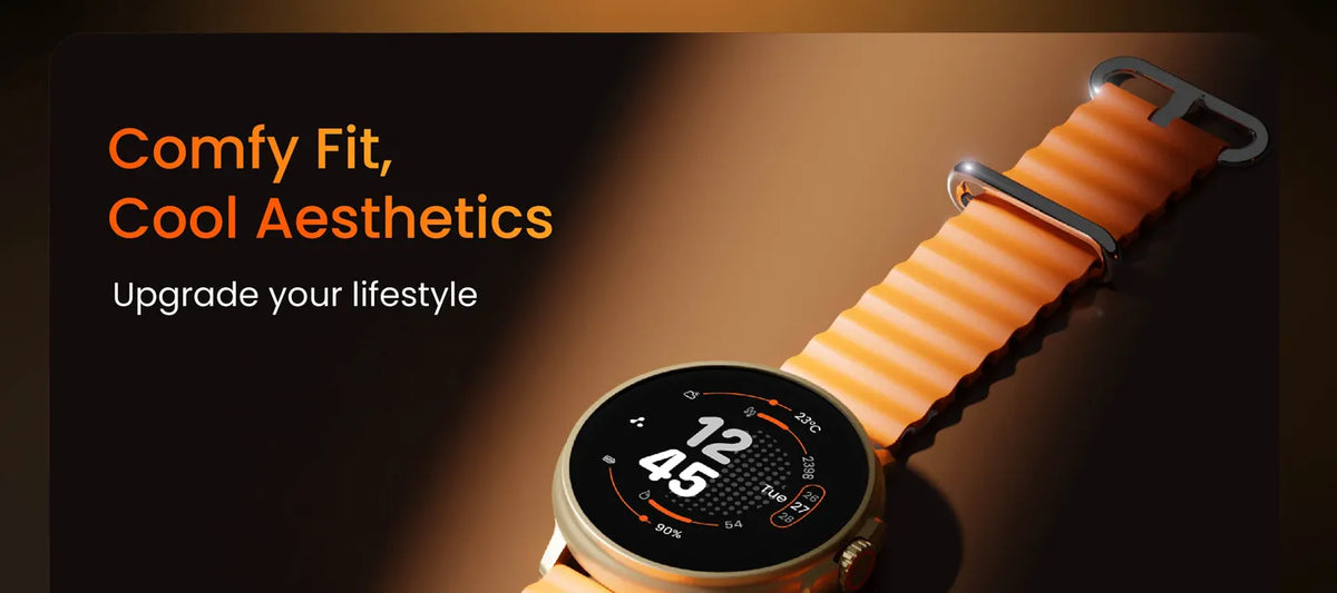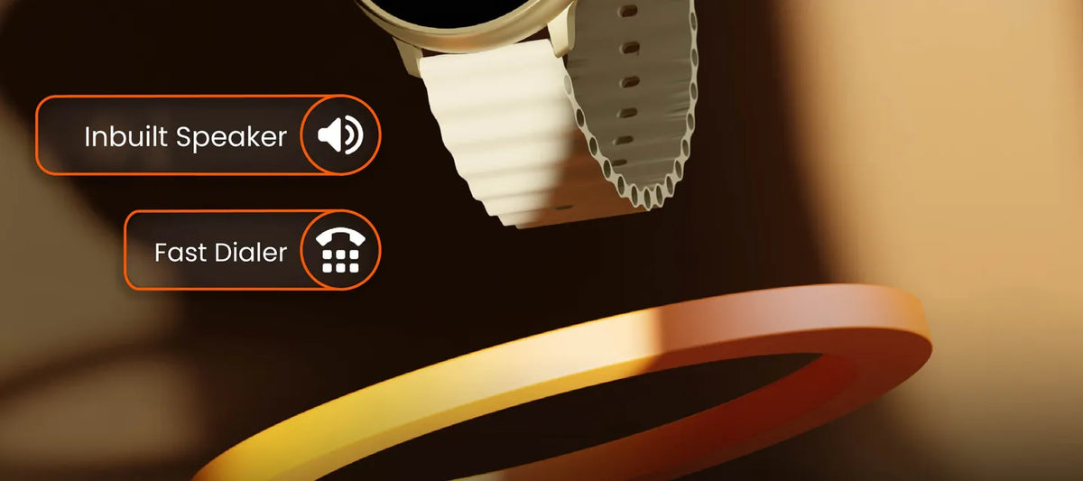 Introducing Ambrane Rush - the smartwatch that's not just smart, but stunningly stylish too! With its sleek, circular dial and premium aesthetics, Rush is the perfect accessory to elevate any outfit. But it's not just a pretty face - this smartwatch also boasts health monitoring features and sports modes to help you stay on top of your fitness goals. And with comfortable, adjustable straps and a rotatory side button, it's as easy to wear as it is to use. Plus, with cool new straps available, you can switch up your style to suit any occasion. Get your hands on Ambrane Rush today and add some serious style to your wrist!