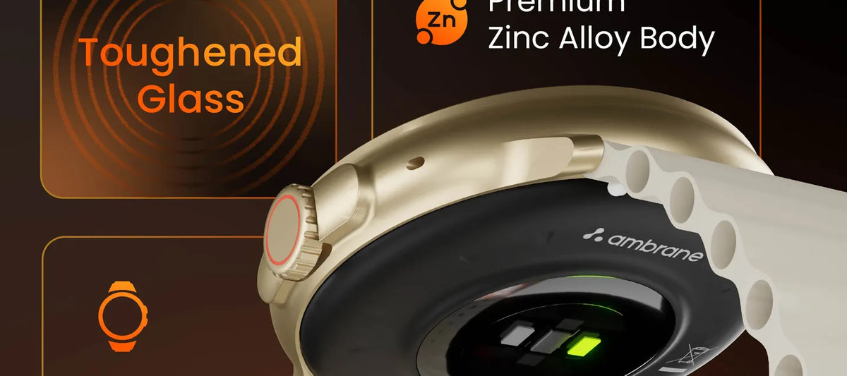 - Durable & Water Resistant: The Ambrane Rush is built to withstand the toughest environments, thanks to its tough and scratch-proof glass and IP68 water resistance. Whether you're hiking through rugged terrain or working out extensively, Rush is up to the challenge.